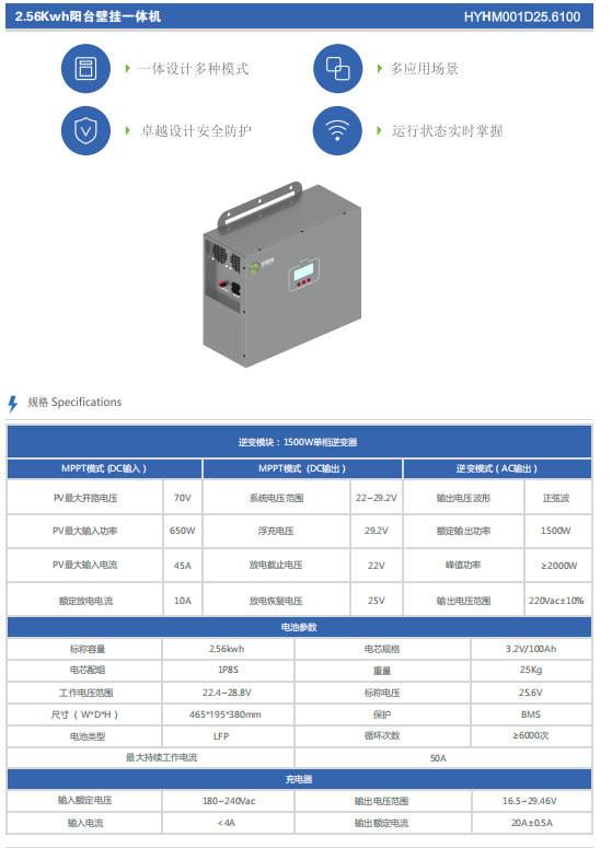 2.56Kwh阳台壁挂一体机